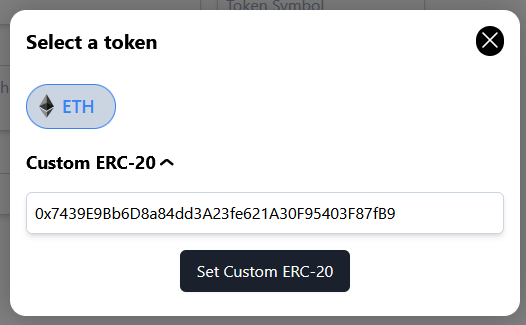 If you wish to set a custom ERC-20 contract, paste the contract address into the app. If correct, the app will read it and display the token name and icon.