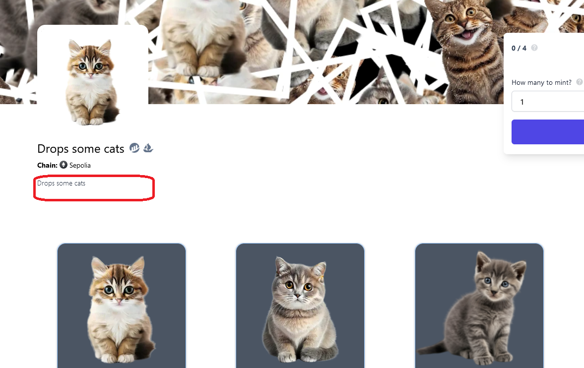 4. **Project Description**: This will be the general project description displayed on the minting page. Additionally, we use this description for individual token descriptions. You will have the option to modify specific token descriptions to achieve different descriptions for each token.