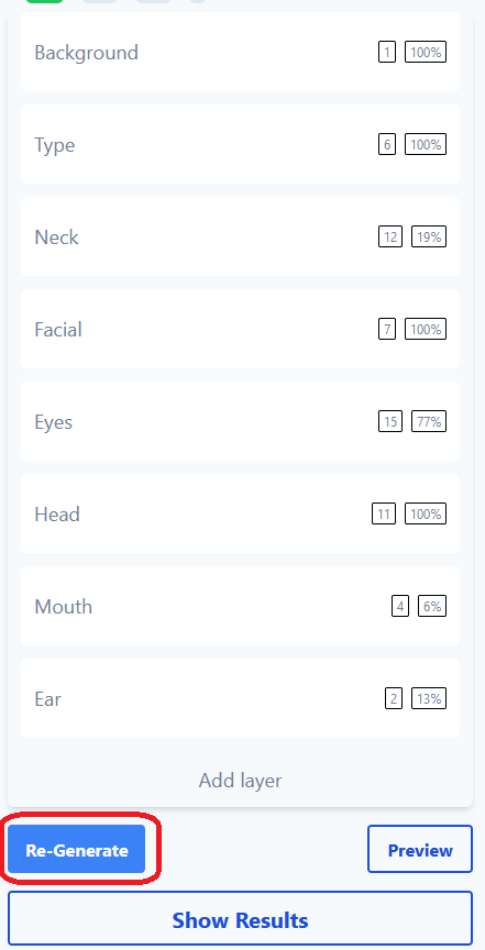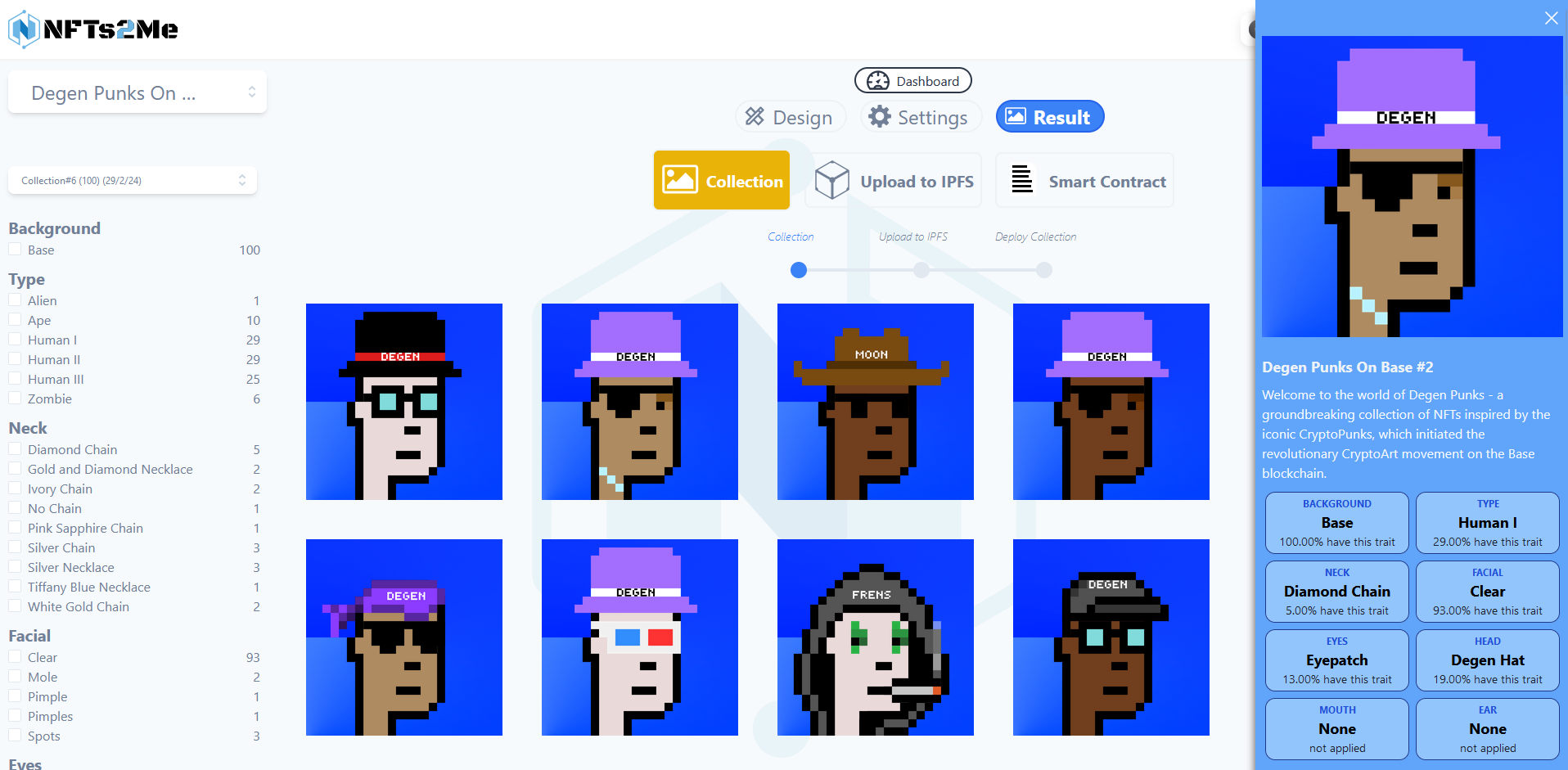 Then all NFT combinations will be regenerated ,and you will see the new collection on "the Result tab"