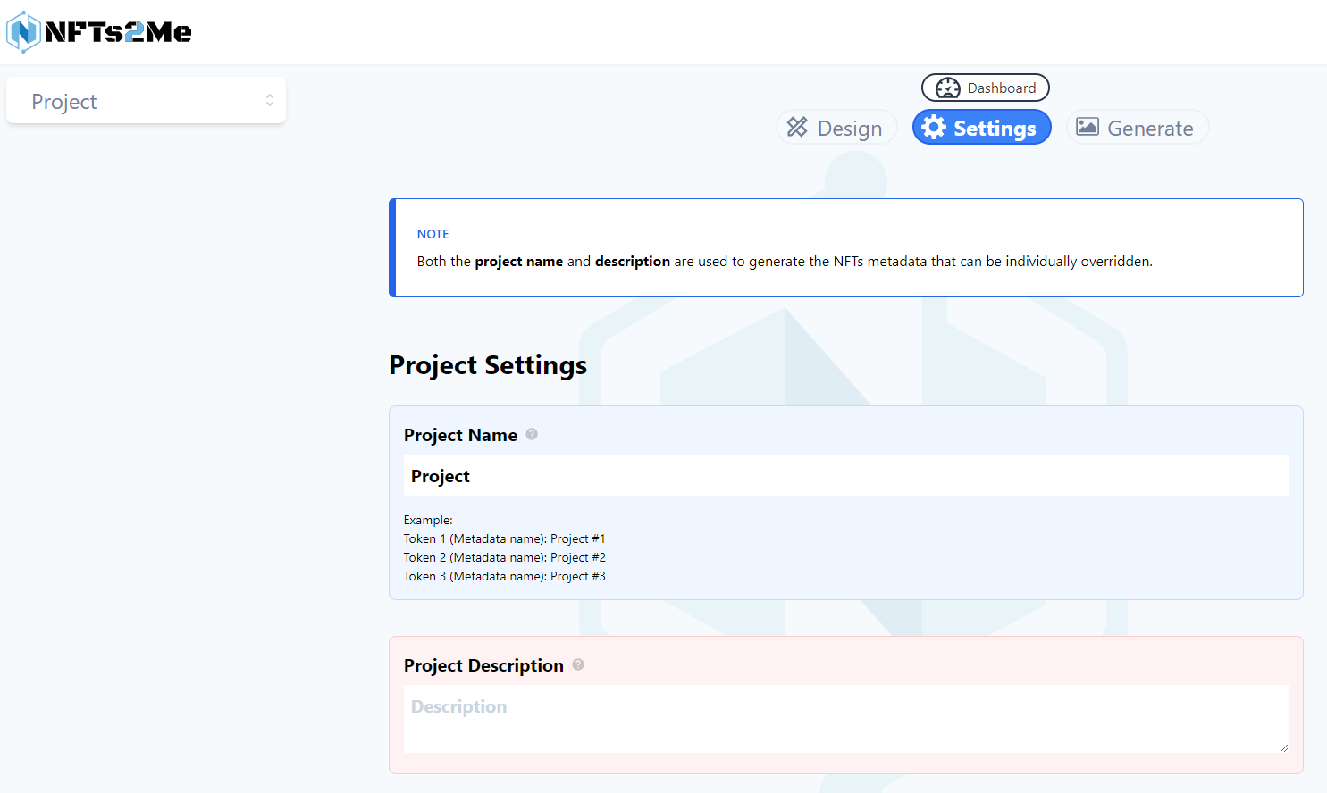 * **Project Description**: This will be the general project description displayed on the minting page. Additionally, we use this description for individual token descriptions. You will have the option to modify specific token descriptions to achieve different descriptions for each token.