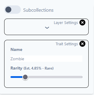Indeed, we also allow the creation of subcollections. You can filter which layers will be available in each subcollection so that you can create a subcollection of NFTs with hats, for example.