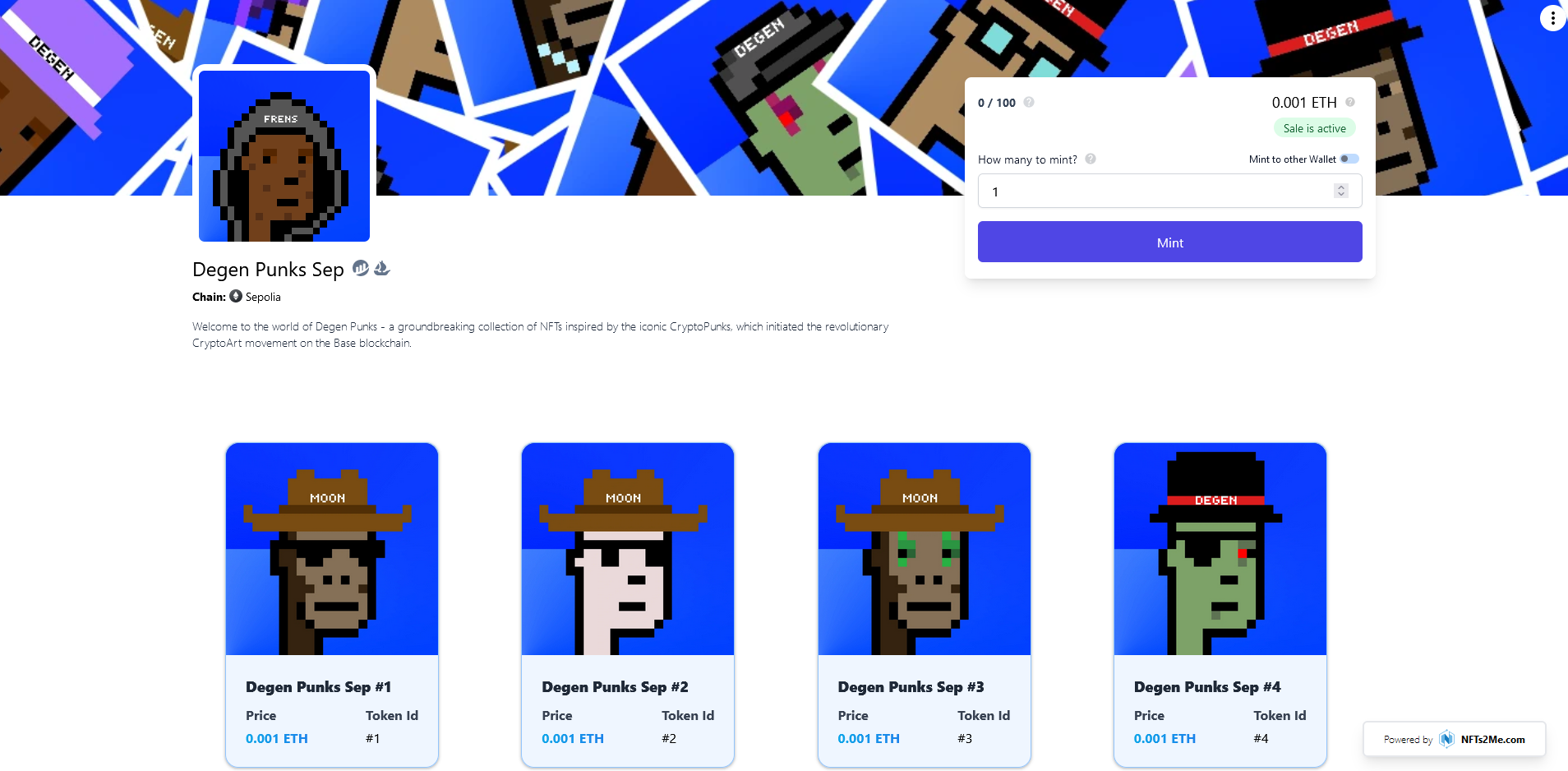 * **Minting Fee**: This is the price the user must pay to mint a new NFT from your collection, excluding the protocol fee (which depends on the chain).