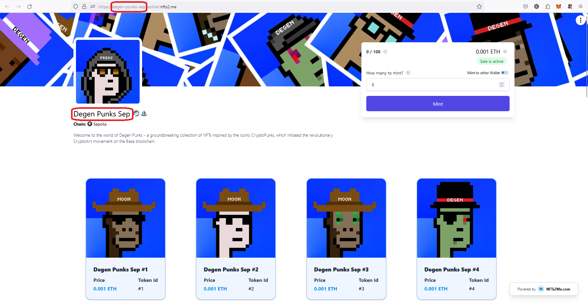 Later, on your project dashboard, you can change your minting page collection name and your subdomain minting page URL, but the original name will be written on the blockchain, and marketplaces will use it.