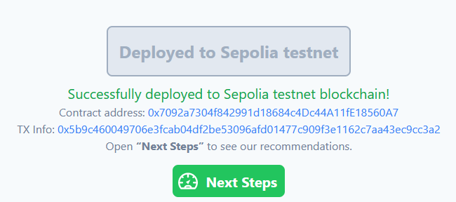 Click the 'Deploy' button to deploy and accept it in your wallet.