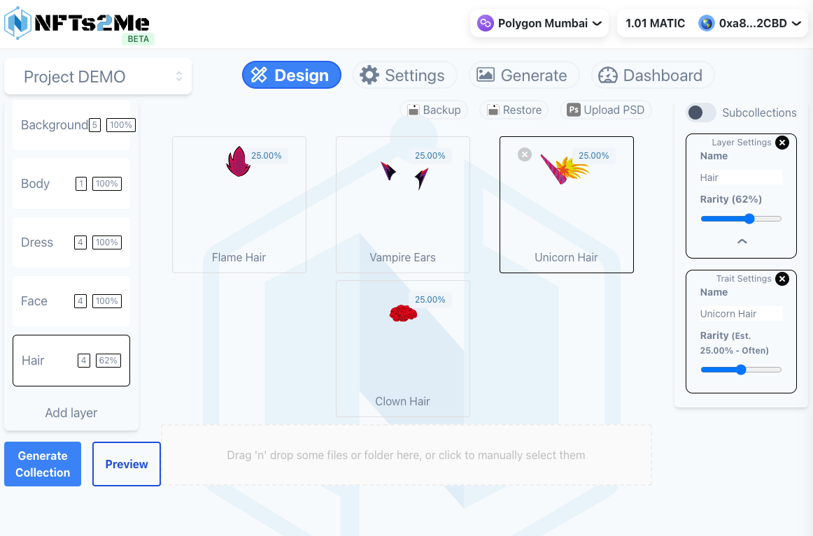 You can find more information in the section "[Generative Art Collection](https://mintpad.gitbook.io/docs/create-and-deploy-nft-collection/generative-art-collection)."